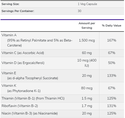 Egyéb összetevők: hipromellóz (cellulóz kapszula), mikrokristályos cellulóz, sztearinsav (növényi forrás) és szilícium-dioxid.