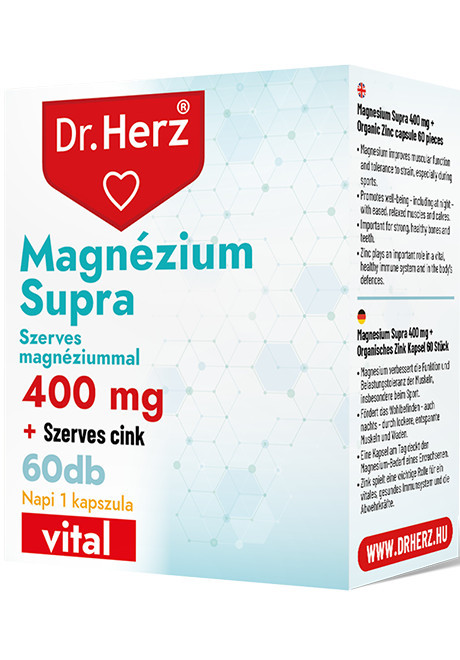 Magas dózisú, jól felszívódó bioaktív készítmény kapszulánként 400 mg szerves Magnéziummal és hozzáadott szerves cinkkel a kedvezőbb élettani hatásért.