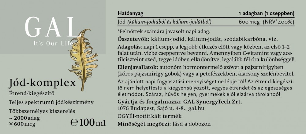 A fentiekre tekintettel a GAL Jód-komplexhez a GAL Multivitamin, a GAL+ Multivitamin, illetve Babaváró termékeink szedését javasoljuk, adott esetben kiegészítve azt további magnéziummal és C-vitaminnal.