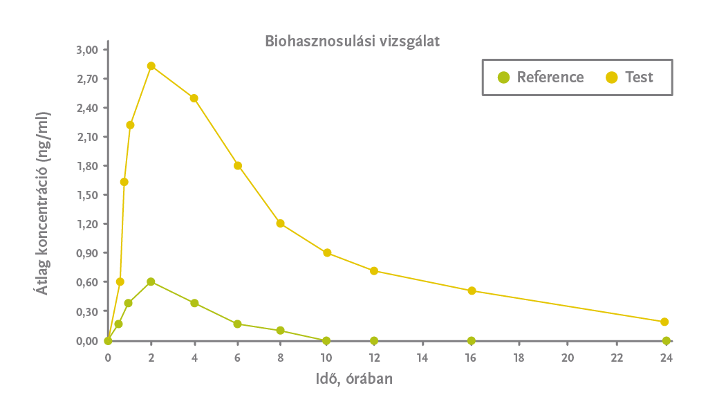 A 180mg hatóanyagot tartalmazó Shoden® ábrán látható AUC értéke 815 ng/ml x h.