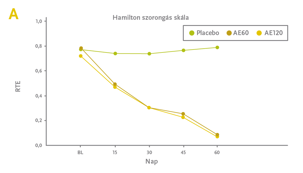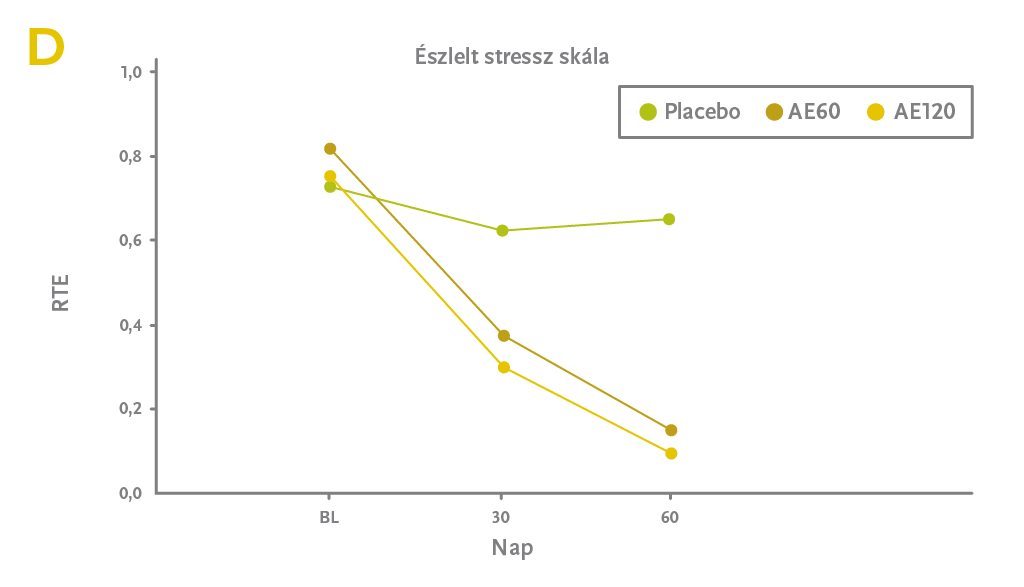 Mindkettőt 2019-ben publikálták. (1,4) Az egyikben 240mg Shoden®-t vagy placebot kaptak az alanyok 60 napon át, de ezt a nagy dózist este, vacsora után vették be és nem reggel. Talán ez lehetett az oka, hogy bár az előbb bemutatott vizsgálathoz hasonló eredménye volt, a jóval nagyobb dózis ellenére sem nagyobb, hanem valamivel kisebb mértékű volt a javulás. (4)
