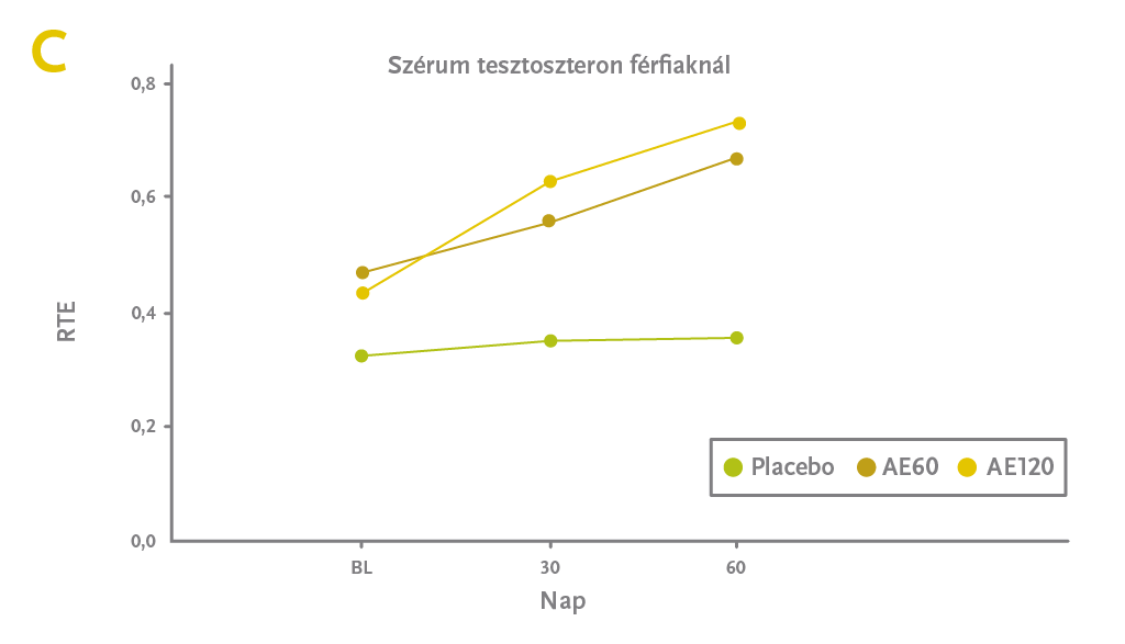 - Placeboról Ashwagandhára váltó csoport (30-60. nap): Jelentős növekedés.