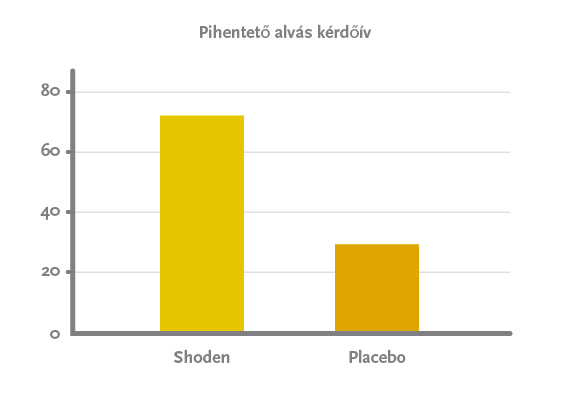 A szubjektív (kérdőíves alváspontszám) eredménye, hogy a placebo 29%-ával szemben a Shoden®-t szedők esetében 72%-kal javult az alvásminőség, kipihentség mértéke.