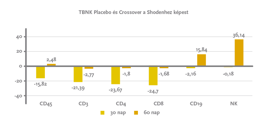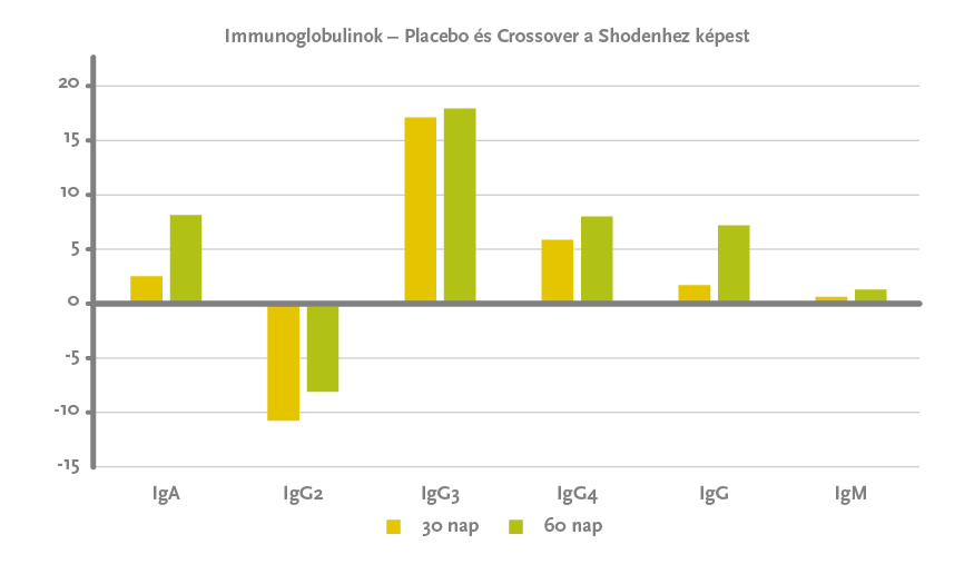 A placebo semennyire, de a Shoden® jelentős mértékben javította az immunválasz minden mért mutatóját, holott kifejezetten részletesen vizsgálták az immunválasz különböző fajtáit.