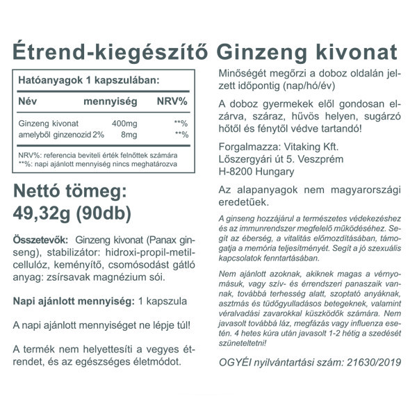 Ginseng kivonat 400mg