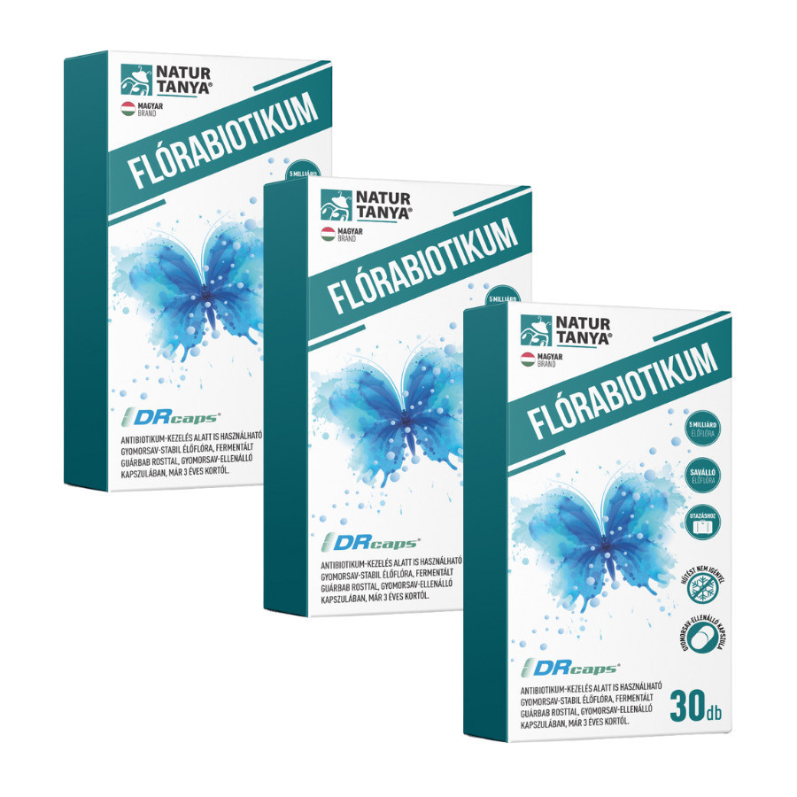 A flórabiotikum kifejezetten antibiotikum mellett ajánlott probiotikumot és prebiotikumot tartalmaz, az antibiotikum rezisztencia veszélye nélkül.