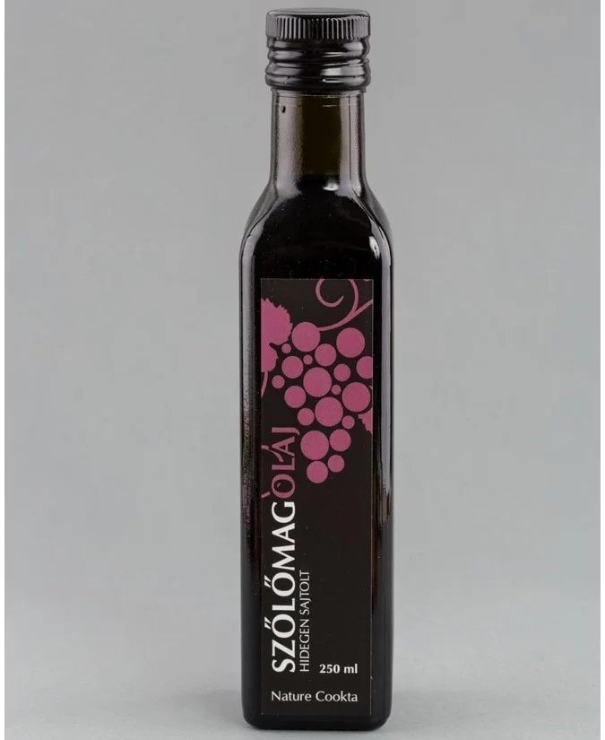 Az önmagában is ízletes szőlőszemek minél sötétebb színben pompáznak, annál hasznosabbak szervezetünk számára. Az ősz gyümölcse az egyik legsokoldalúbban felhasználható alapanyag a konyhában. A Nature Cookta Szőlőmagolajat érett szőlőszemekből készítik. A különleges eljárás során a magokat összezúzzák, préselik és hidegen sajtolják. Tisztításához ülepítik és szűrik is. Az érett szőlőre hasonlító aromáját sütés után is meg tudja őrizni.
