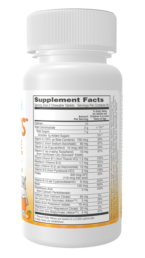 Lédús narancs ízesítésű multivitamin rágótabletta gyermekeknek.