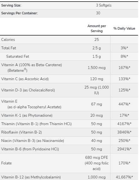 Egyéb összetevők: Softgel kapszula [marha zselatin (BSE-mentes), glicerin, víz, szentjánoskenyér], méhviasz és szójalecitin. Szóját tartalmaz. MCT olaj kókuszdió/pálmamagolajból.