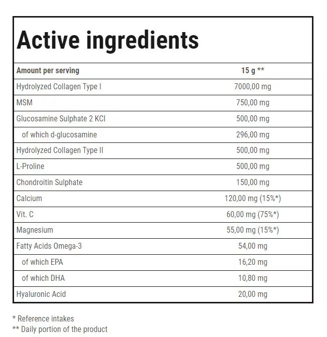 A FLEX GUARD egy komplex étrend-kiegészítő, amely kollagén-hidrolizátumot, Hialuron, MSM-et, glükózamint, L-prolint, Omega-3-at, kondroitint és hialuronsavat tartalmaz.