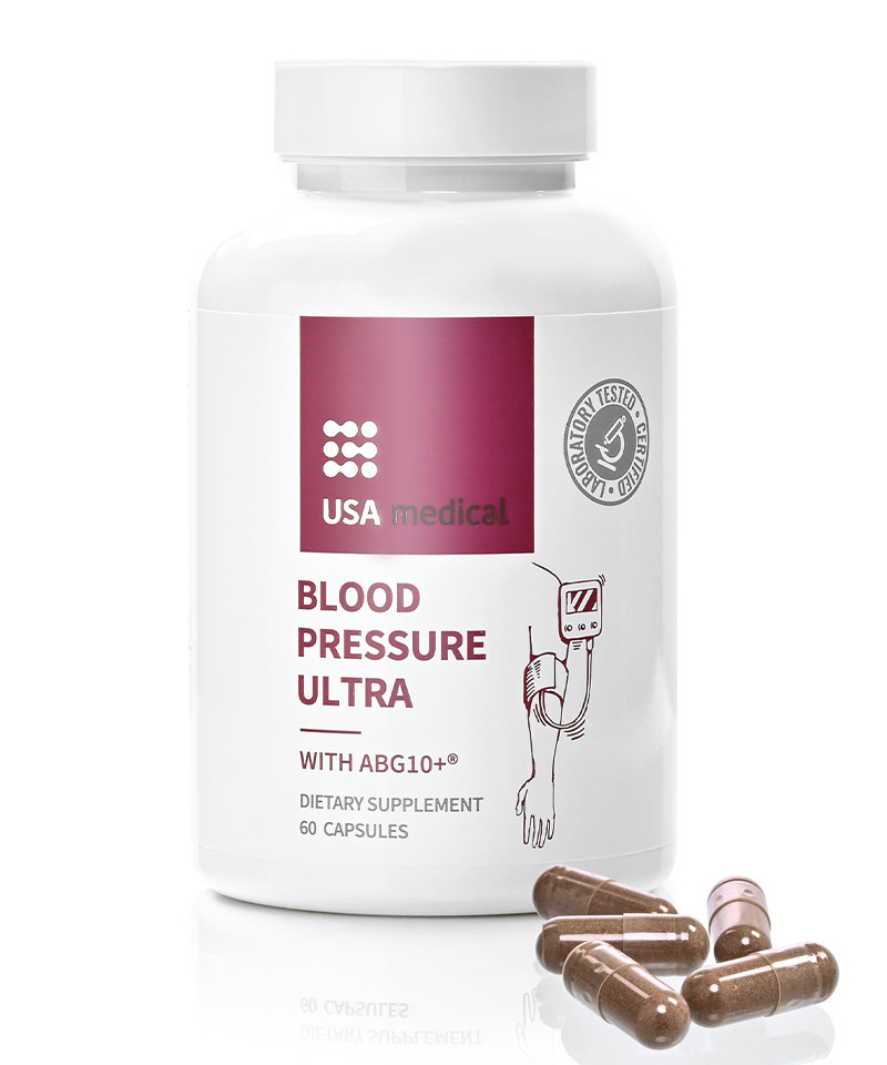 Az USA medical Blood Pressure Ultra egy olyan étrend-kiegészítő, ami a szabadalmazott ABG10+®-al és az AlphaWave® L-Theanine-nal, valamint nattokináz enzimmel, káliummal, B1-vitaminnal, cinkkel, C-vitaminnal és szőlőmag kivonattal támogatja a szervezetet az optimális vérnyomás elérése érdekében. Egy doboz USA medical Blood Pressure Ultra 60 db kapszulát tartalmaz, ami 1 havi adag egy felnőtt számára.