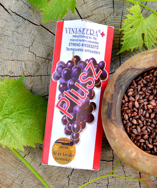 A szőlőmagban található polifenolos alkotórészek elősegíthetik a sejtek védelmét a szabadgyökök okozta károsító hatásokkal szemben. A szőlőmag mikroőrleményben levő polifenolok antioxidáns hatásuknak köszönhetően hozzájárulnak a szervezetünkben zajló káros oxidatív folyamatok gátlásához. A VINISEERA Plusz átlagos összpolifenol tartalma: 4500mg/100g. Rezveratrol tartalma: 0,16 mg/napi adag. Ez a készítmény meghatározott mennyiségben tartalmaz szőlő gyümölcshéj (nem törköly) mikroőrleményt, melyet különleges eljárással – vegyi anyagok nélkül – állítunk elő és keverünk a szőlőmag mikroőrleményhez. Ennek eredményeként a VINISEERA Plusz étrend-kiegészítő hatóanyagtartalma lényegesen meghaladja a tiszta szőlőmag mikroőrleményét. A VINISEERA Pluszban koncentráltabban található meg minden antioxidáns vegyület, ami a szőlőben, vörös borban is jelen van. Közel 2000 féle antioxidánst, polifenolt tartalmaz. Legismertebb összetevői: rutin, kaempferol, kvercetin, rezveratrol, katechin, epicatechin, antocianidok, P1, P2, B1, B2, B3 stb. A mikroőrlési eljárásnak köszönhetően egy szőlőmag felülete kiterítve kb. fél m2 lenne. A nagy felület teszi lehetővé, hogy a benne levő polifenolok közel 100 %-ban felszívódnak szervezetünkben. Javasolt napi adag: 4 g/nap, azaz 1 adagolókanál. Meleg teába, joghurtba keverve fogyaszthatjuk, illetve 3-5%-ban lisztet helyettesítve süteménybe, kenyérbe sütve, kozmetikai pakolásba keverve is alkalmazhatjuk. Amennyiben itallba keverjük, először a mikroőrleményt tegyük a pohárba, majd néhány csepp folyadékot öntsünk rá, keverjük krémesre, higítás után fogyasztható.