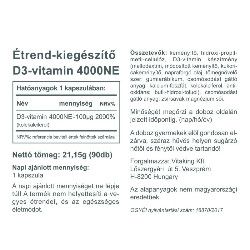 D3 vitamin 4000NE hatóanyag tartalommal